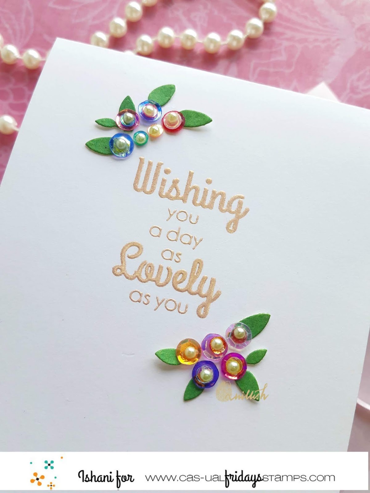 What a beautiful card Ishani - love how you have used the sequins and pearls - so colourful but also elegant!